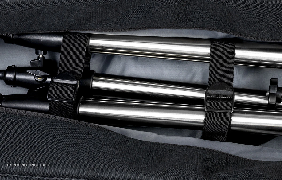 The Tripod Soft Case is constructed from 900 denier polyester for durability and weather resistance. Its walls are lined with 16mm thick EPE foam to protect your gear. The bottom panel is reinforced with a hard layer of PVC for extra protection from minor bumps.
