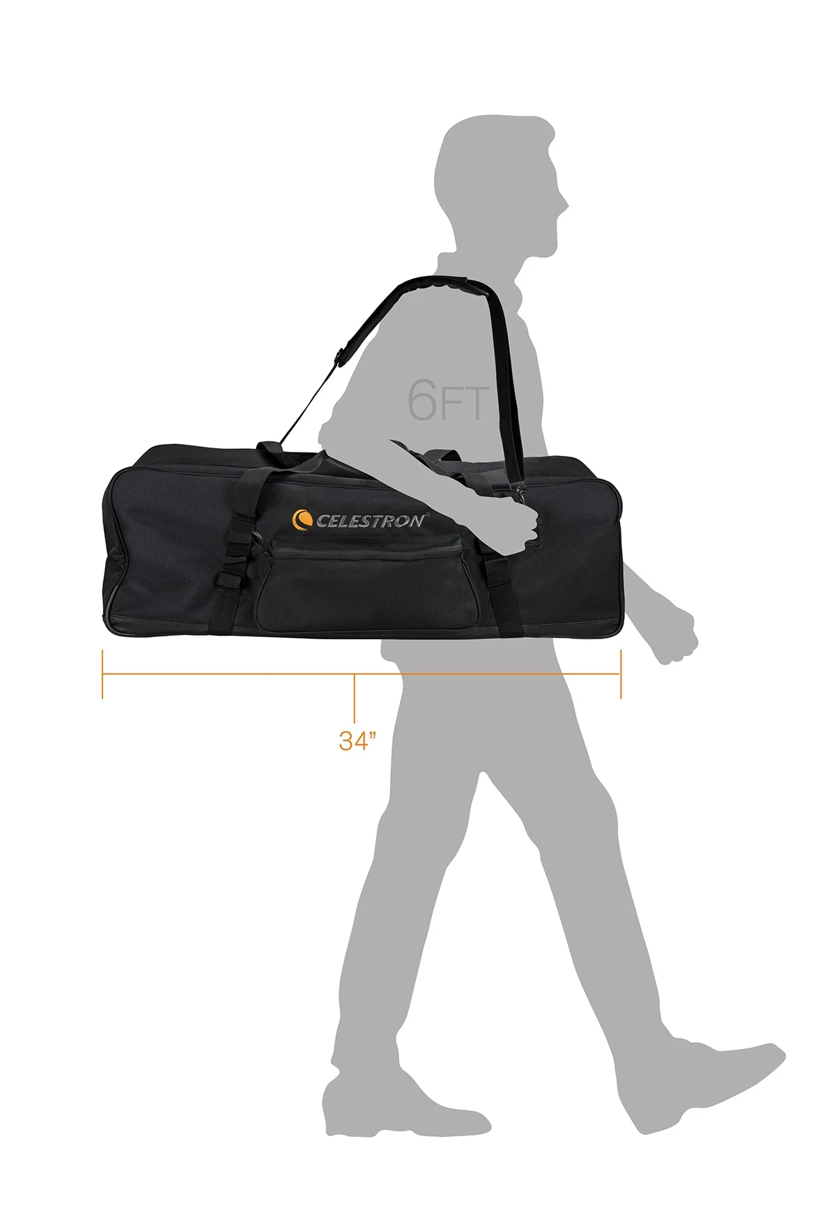 This tripod soft case can hold tripods under 34â long, including the tripods in these Celestron telescope kits.