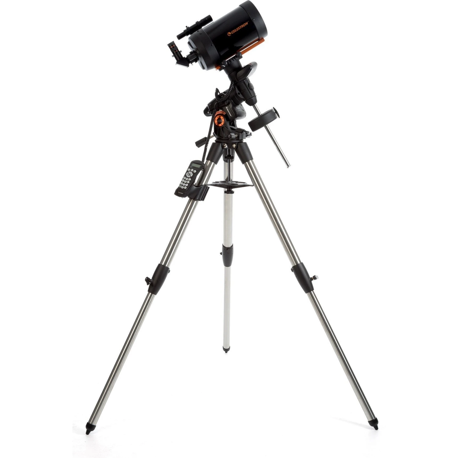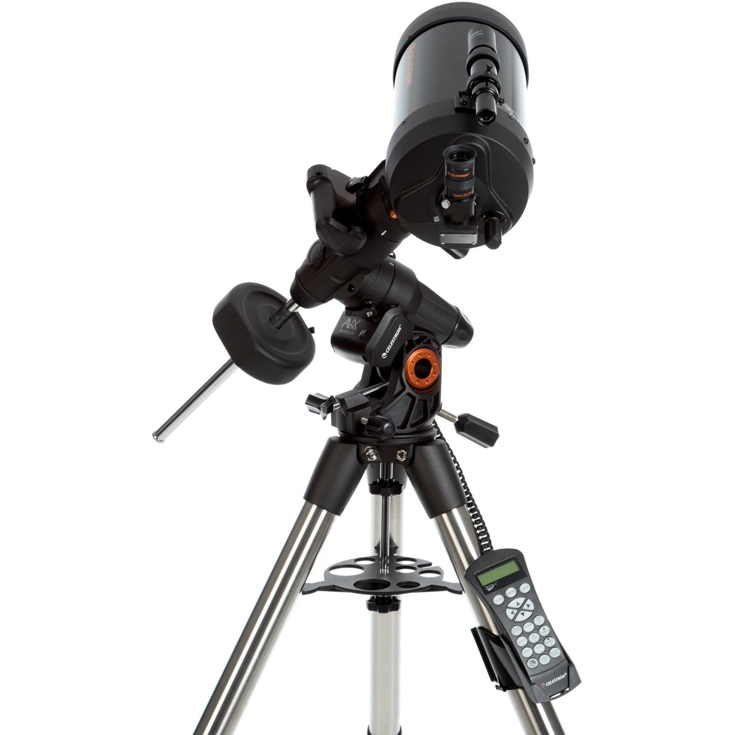 The Advanced VX is the smallest of Celestron’s German equatorial mounts. The computerized GoTo capability automatically tracks objects as they move across the night sky. The Advanced VX mount includes ports for a hand control, an autoguider, and 2 AUX ports for optional accessories. The NexStar+ hand control gives you instant access to all the functions your mount has to offer. With automatic slewing and menu descriptions, any level of astronomer can master this mount in just a few observing sessions. The Advanced VX also has an impressive tripod for its class with a 2” diameter steel tripod legs providing an extra-wide stance for improved stability.