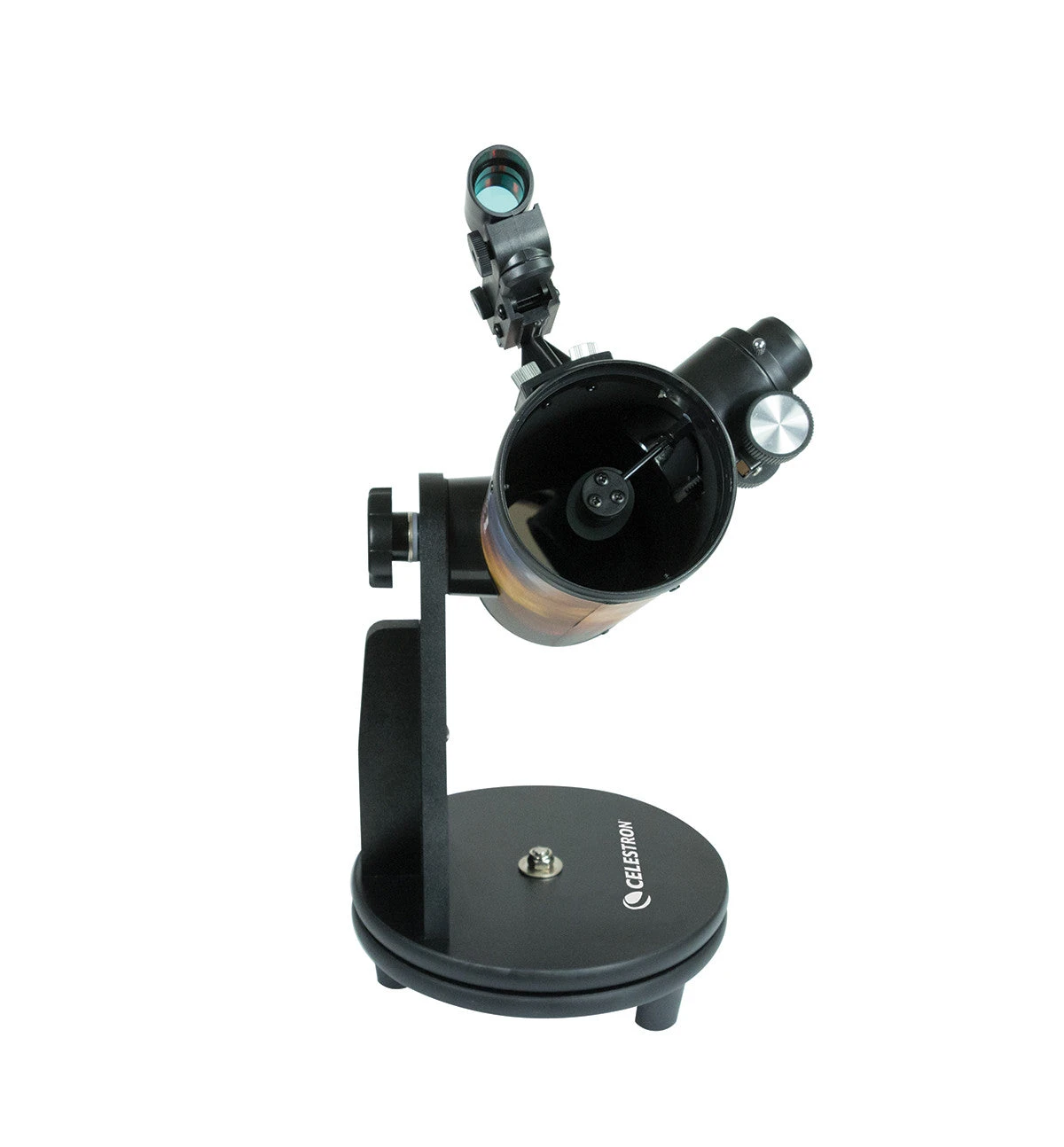 COSMOS FirstScopeâs Newtonian reflector optical system features a spherical mirror with a generous 76 mm of aperture. Youâll get bright, sharp views of celestial objects, and observe the Moonâs mountains and craters in crisp detail. Thanks to COSMOS FirstScopeâs wide field of view, you’ll be able to observe expansive views of the sky which include open star clusters, comets, or favorite deep-sky objects like the Orion Nebula.