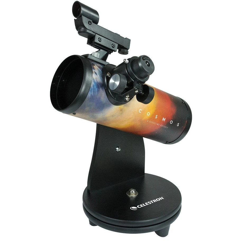 Inspired by COSMOS: A SpaceTime Odyssey, the telescope tube is adorned with a custom, special-edition wrap featuring the COSMOS eye nebula design. When not in use, this unique telescope is stylish enough to be a decorative fixture on your bookshelf or desk. Youâll also receive a beautiful Cosmic Calendar poster with images from the show, and a free planetarium app for your iPhone, iPad, or Android device.