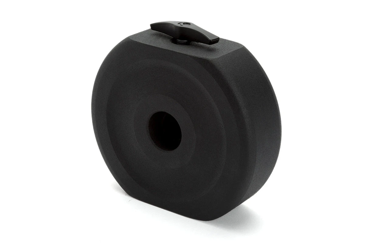 This counterweight comes with a sturdy knurled knob locks to safely hold in place on the counterweight shaft. The counterweight is designed to fit 19mm counterweight shafts