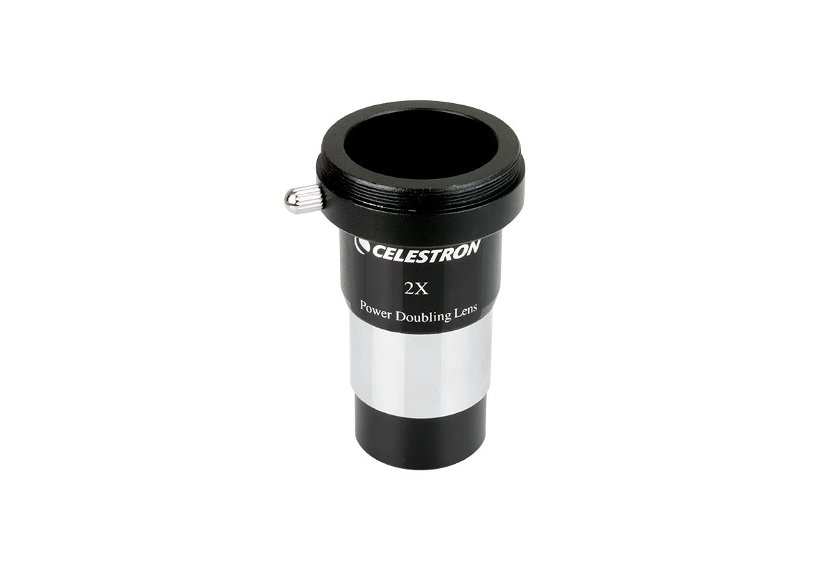 The 2x Power Doubling Lens doubles the magnification of any eyepiece that is used with it. The lens goes in between the telescope and the eyepiece you are using. In addition, this lens also features integrated T-threads that allow you to attach your DSLR camera to your telescope for high magnification lunar and planetary photography. (Note: to take advantage of this feature, you will need to purchase an optional T-ring that fits your specific camera body and thread it onto the T-adapter. Celestron offers Canon and Nikon T-rings.)