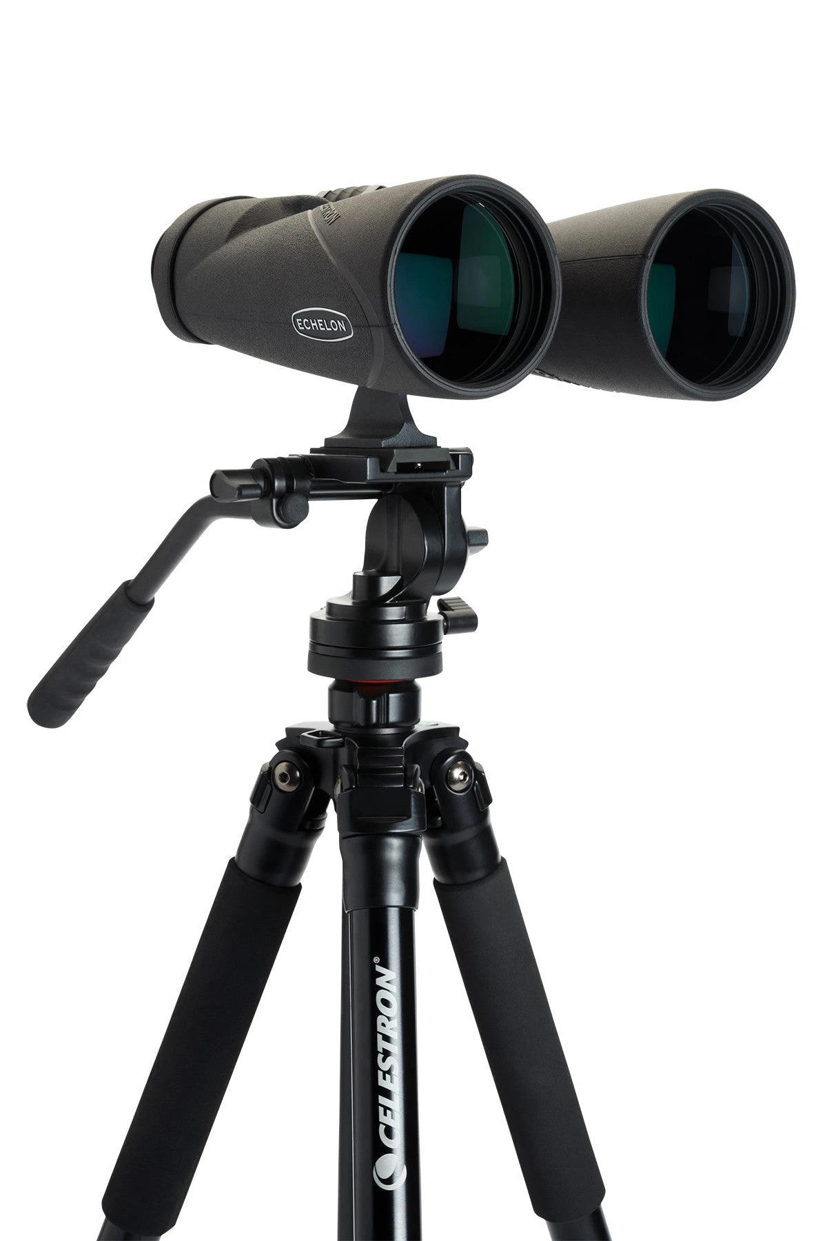 Echelon binoculars are easily attached to a photographic tripod for extended observing sessions. A binocular tripod adapter (sold separately) is used to make the connection between the binoculars and a standard tripod, and is especially helpful for vibration-free observations of the night sky.