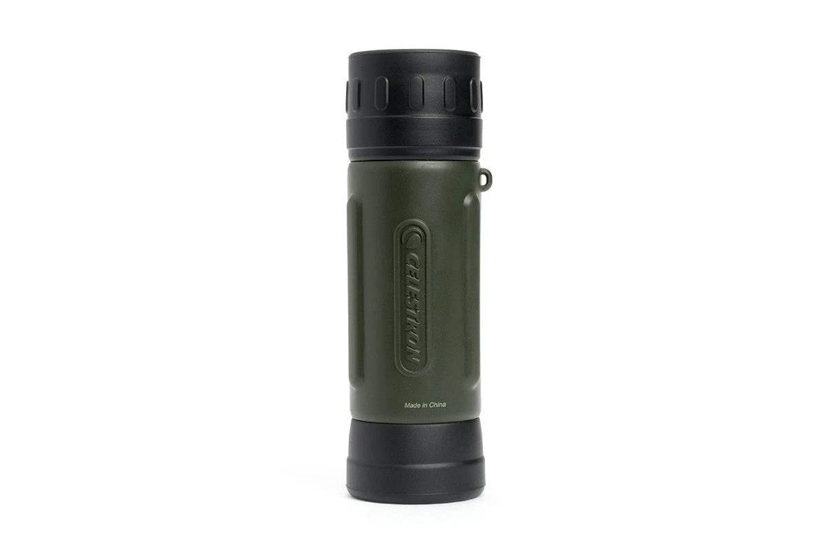The perfect grab-and-go optic, the Celestron Elements 10×25 Monocular is a super-compact optics perfect for hikes, backpacking trips and outdoor excursions. Completely rubber armored, it will withstand hard use on the trail. The monocular is even water resistant for use in harsh weather conditions. Using the monocular is easy, even for beginners, thanks to the thumb indents and finger ridges that provide a non-slip grip.