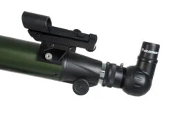 The Explorascope 60AZ comes with two eyepieces (20mm and 4mm), 3x Barlow lens, 90° erect image diagonal, and a finderscope. Choose the 20mm eyepiece for low power or the 4mm eyepiece for higher magnification views. The finderscope helps you quickly center an object in the eyepiece for easier observing. For even more magnification, connect your 3x Barlow lens to triple the power of each eyepiece. Combined with the Barlow lens, this telescope provides up to 105x magnification (20mm eyepiece) or 525x magnification (4mm eyepiece).
