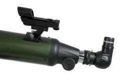 The Explorascope 80AZ comes with two eyepieces (20mm and 4mm), 3x Barlow lens, 90° erect image diagonal, and a finderscope. Choose the 20mm eyepiece for low power or the 4mm eyepiece for higher magnification views. The finderscope helps you quickly center an object in the eyepiece for easier observing. For even more magnification, connect your 3x Barlow lens to triple the power of each eyepiece. Combined with the Barlow lens, this telescope provides up to 135x magnification (20mm eyepiece) or 675x magnification (4mm eyepiece).