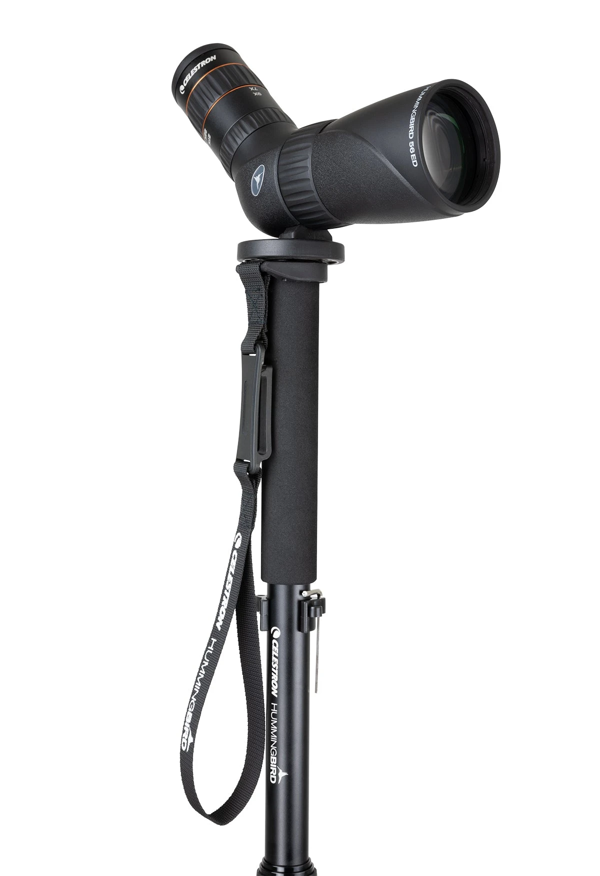 The Hummingbird monopod will provide you with a stable platform for your spotting scope, binocular, or camera. This monopod features a durable, aluminum tube that stands up to hard use in the field. The padded grip, wrist strap, and belt clip give you a firm, secure grip on the monopod for stable, non-shaky images. With the twist-lock and four-leg sections, the monopod can be adjusted to a huge range of heights, from just 18” to 56”, making it perfect for a variety of users and applications.