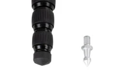 The Hummingbird monopod comes with two interchangeable feet: one metal foot spike and one padded foot. The removeable feet will help you get the right on-the-ground traction for pavement or “off-road” use. Use the standard padded foot for smooth or paved surfaces and the metal spike for soft ground or other less stable conditions.