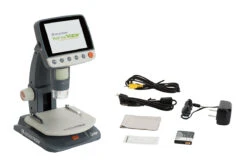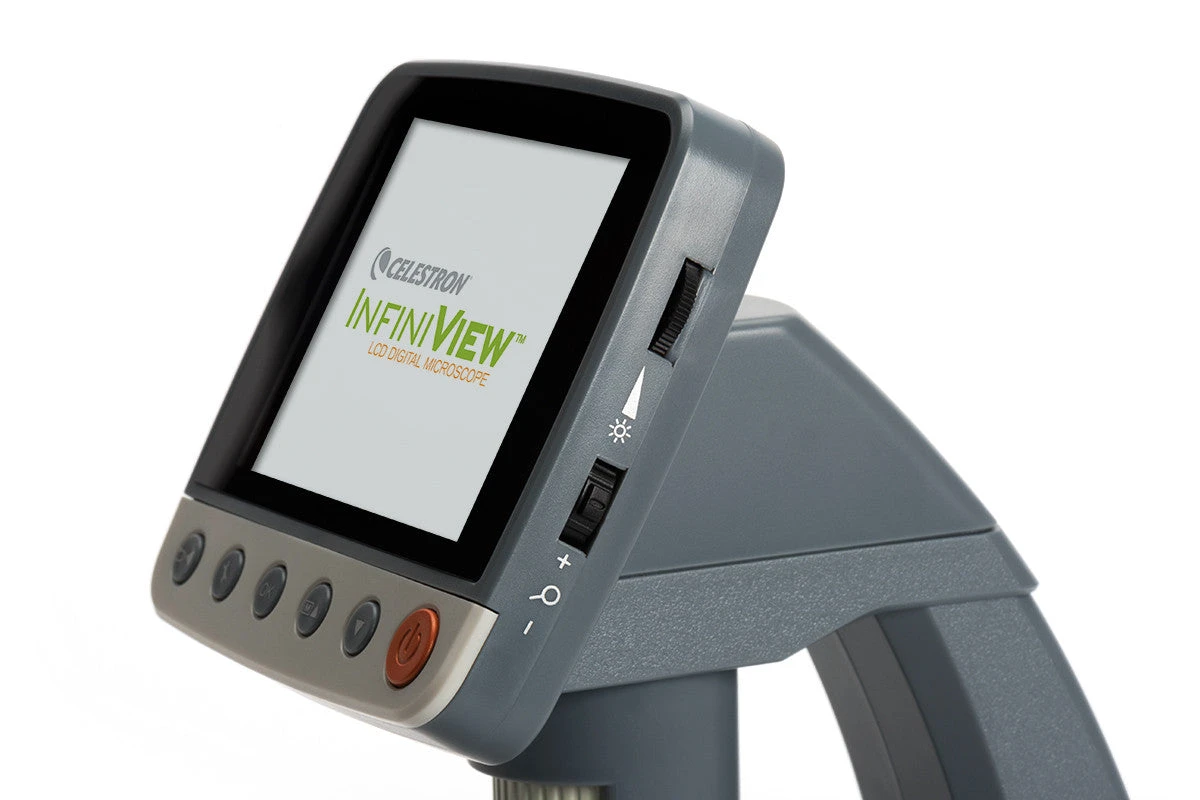 The Infiniview LCD Digital Microscope is a versatile tool that’s just as useful out in the field as it is in a classroom. Infiniview comes with a 3.5″ LCD screen and rechargeable Lithium Ion battery that will last up to 2 hours in the field. You’ll be able to capture photos using Infiniview’s true 5MP digital camera, and even record short video clips of your specimens. Infiniview includes downloadable Celestron’s Capture Pro software for use with your PC, and a TV output so you can view the microscope’s display on any screen.