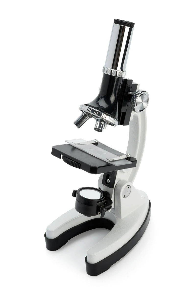 Perfect for home, classroom, or home-school use, this kit includes all the essential items youâll need to begin exploring the wonders of the microscopic world. The kit comes with a metal-framed microscope with an excellent magnification range. Use it to view everything from the âsimply smallâ (100x) to the âtruly microscopicâ (1200x). The microscopeâs eyepiece tilts from a vertical to an angled position, so observers of all ages can find their most comfortable viewing angle. Once youâve placed a specimen on the stage, use the adjustable illuminator to bring out its unique details.