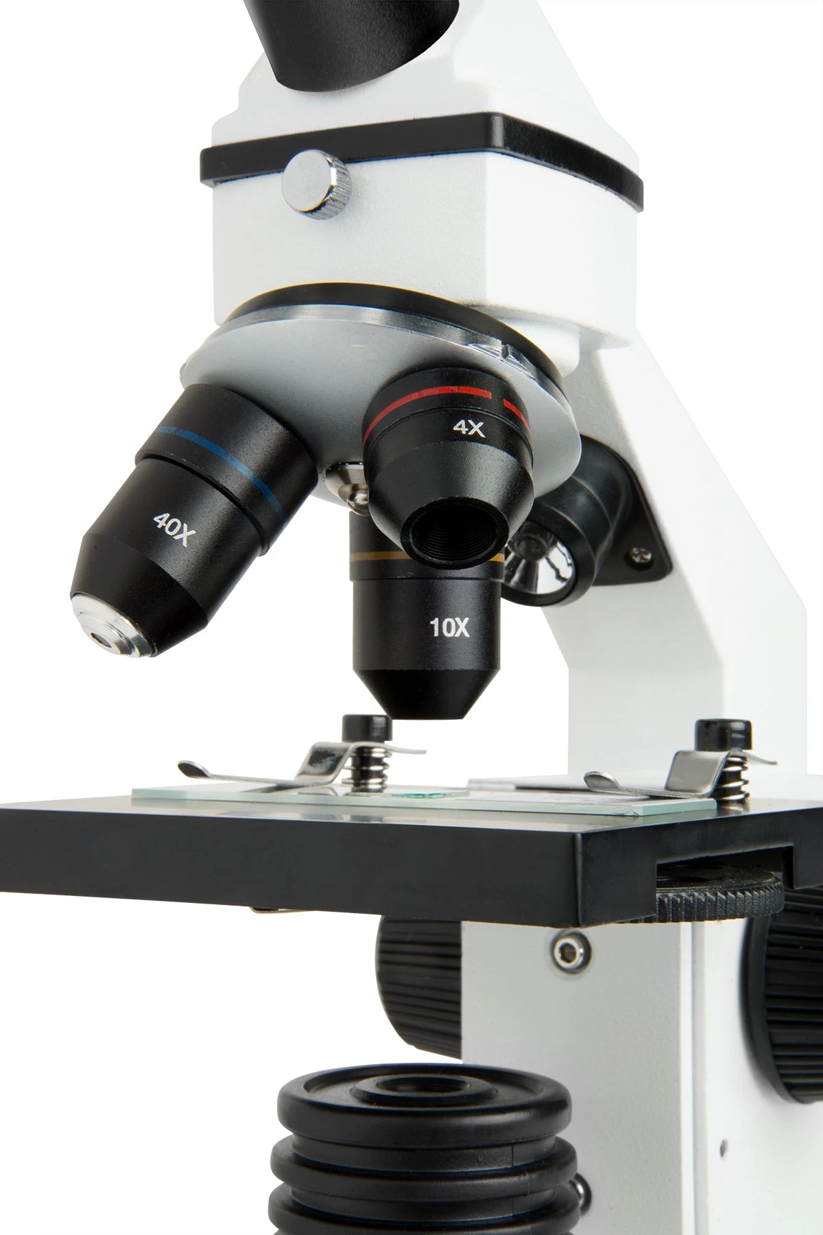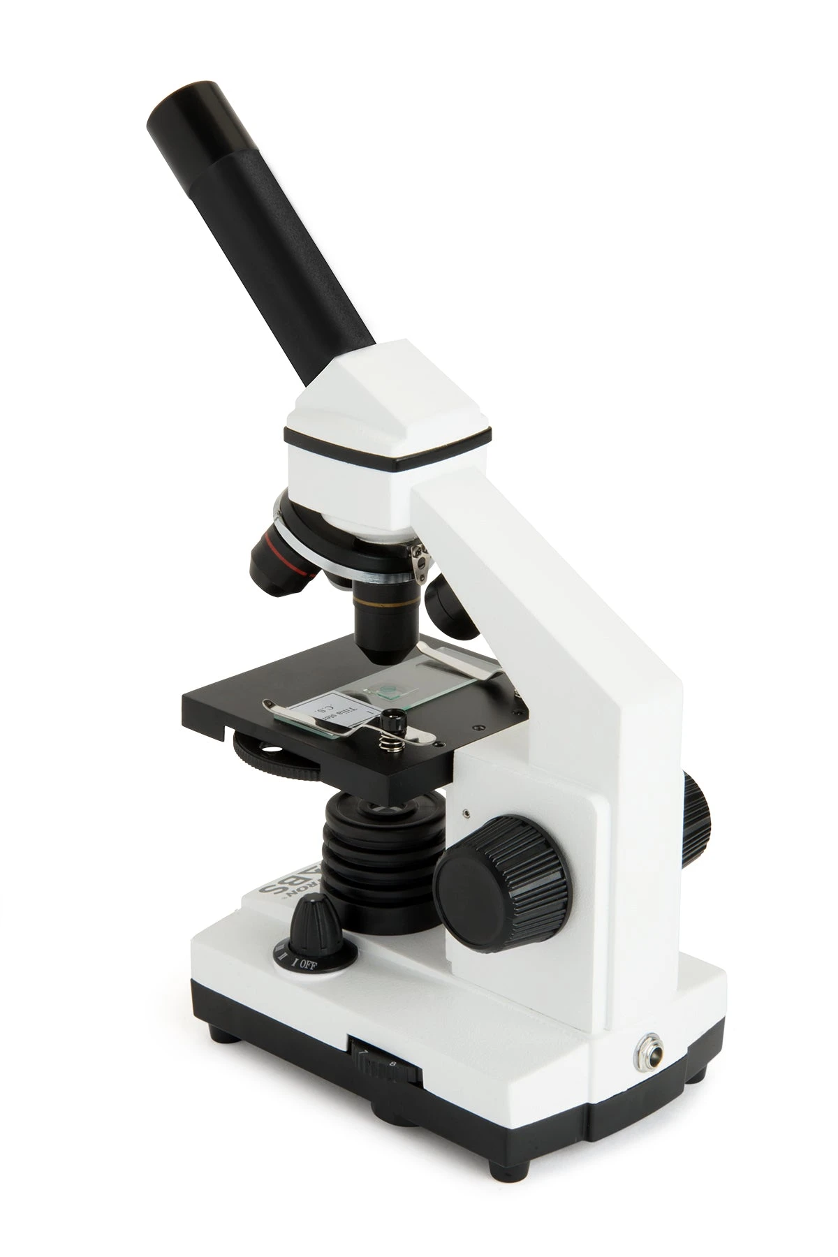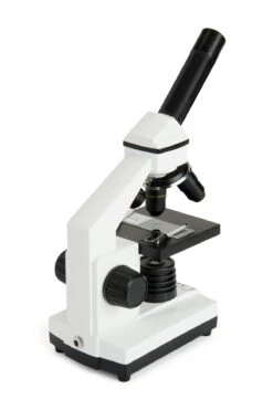 Strong and stable thanks to its all-metal construction, this microscope features an adjustable stage with metal clips to center your specimen slides. The 10 included prepared slides guarantee exciting discoveries right out of the box. Rotate your monocular head to view the specimen comfortably or share the view with someone sitting across the table.