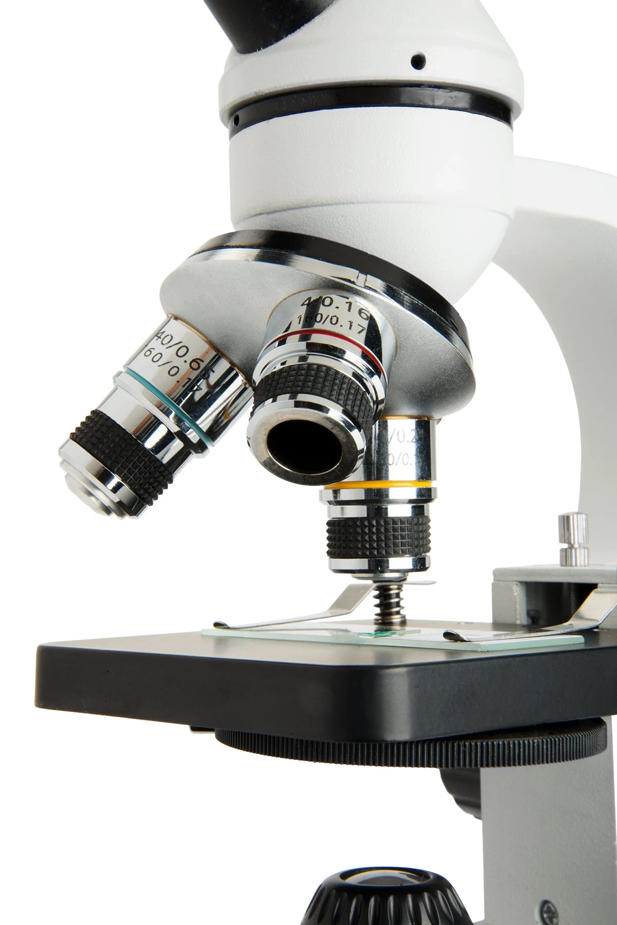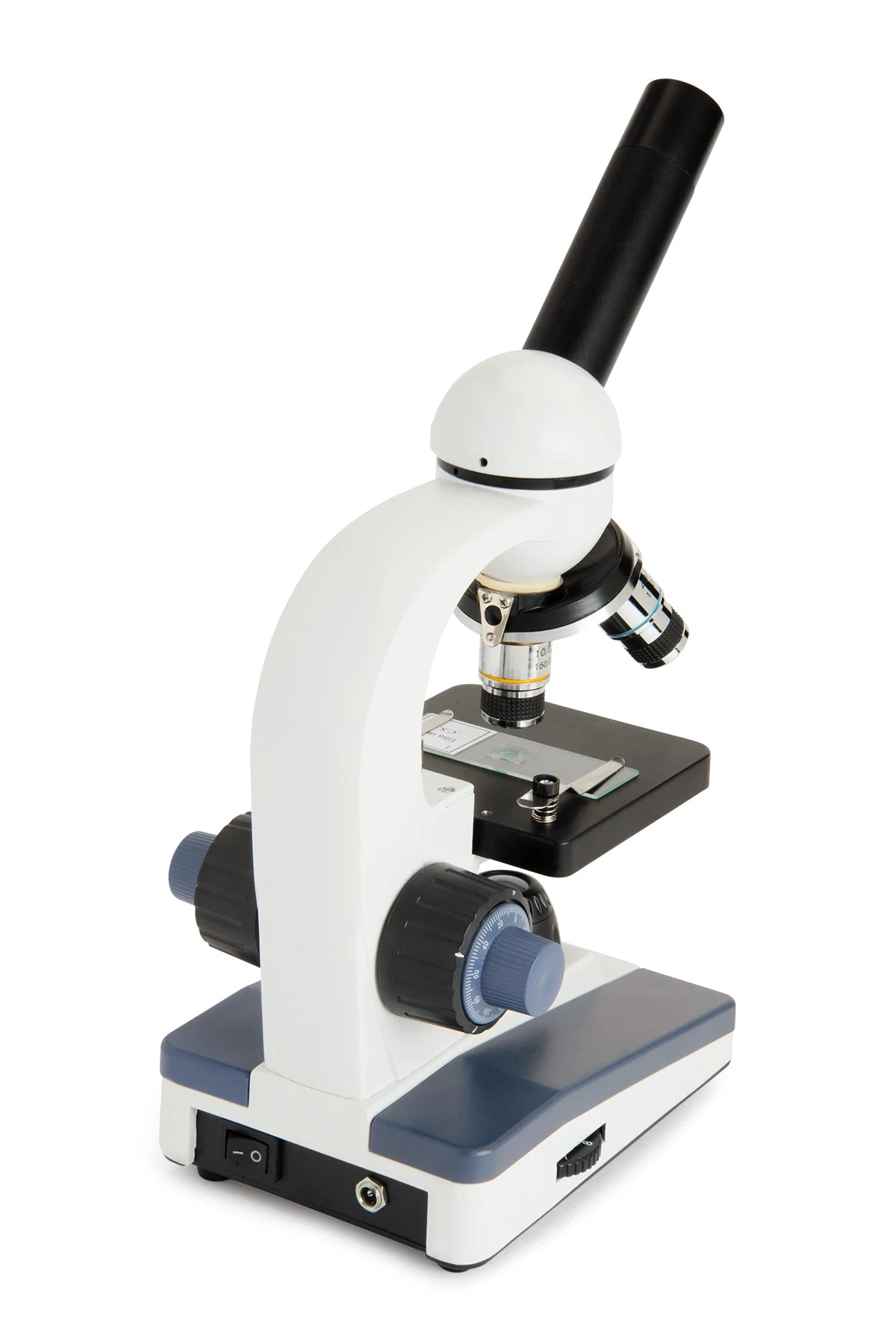 Strong and stable thanks to its all-metal construction, this microscope features coaxial coarse and fine focus knobs, guaranteeing fine-detailed viewing of your specimen slides. The 10 included prepared slides guarantee exciting discoveries right out of the box. Rotate your monocular head to view the specimen comfortably or share the view with someone sitting across the table.