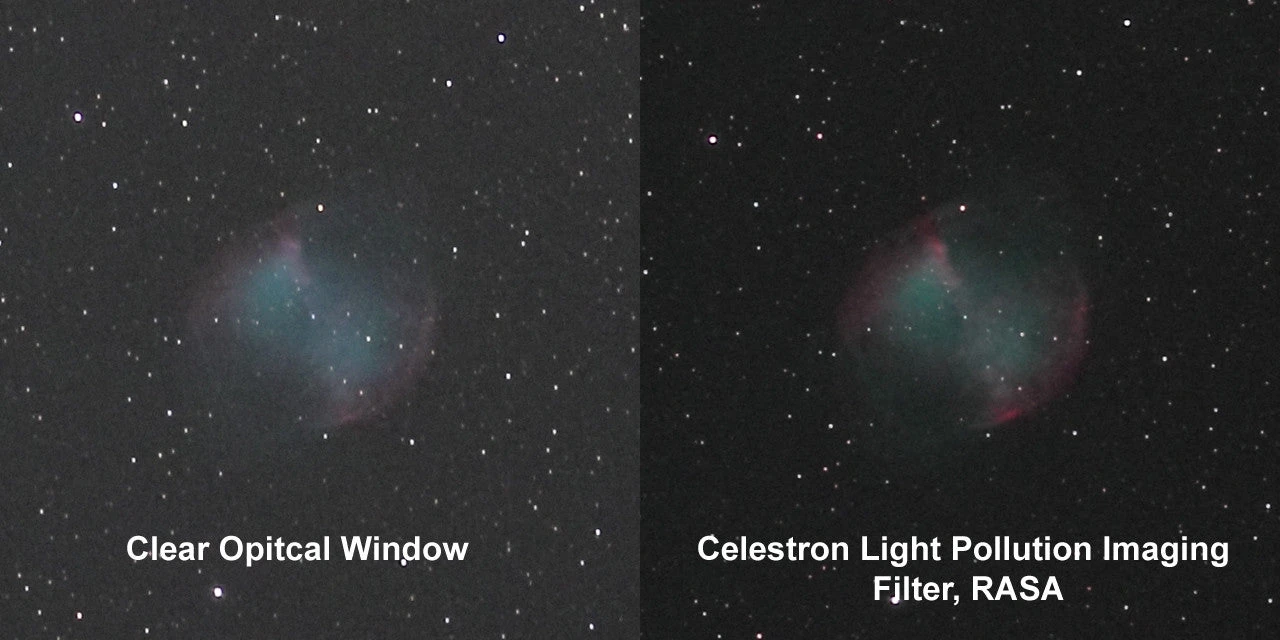 The Light Pollution Imaging Filter for RASA “surgically” removes unwanted light pollution while preserving as much of the useful spectrum as possible. That means you’ll still retain over 90 percent of the light captured by your telescope at many wavelengths.