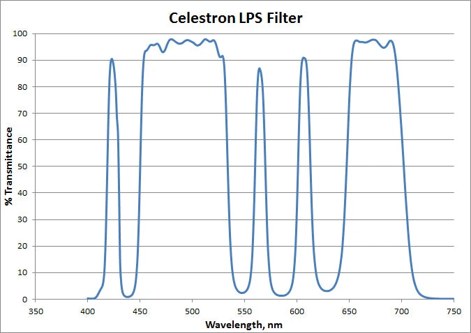Every Celestron Light Pollution Imaging Filter is tested individually for light transmission. Inside the box, you’ll receive a graph detailing the actual transmission spectrum for your specific filter.