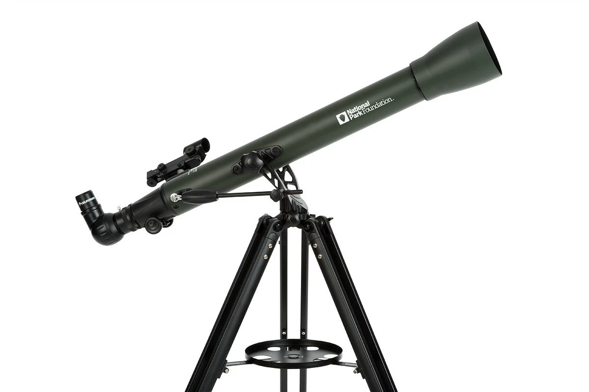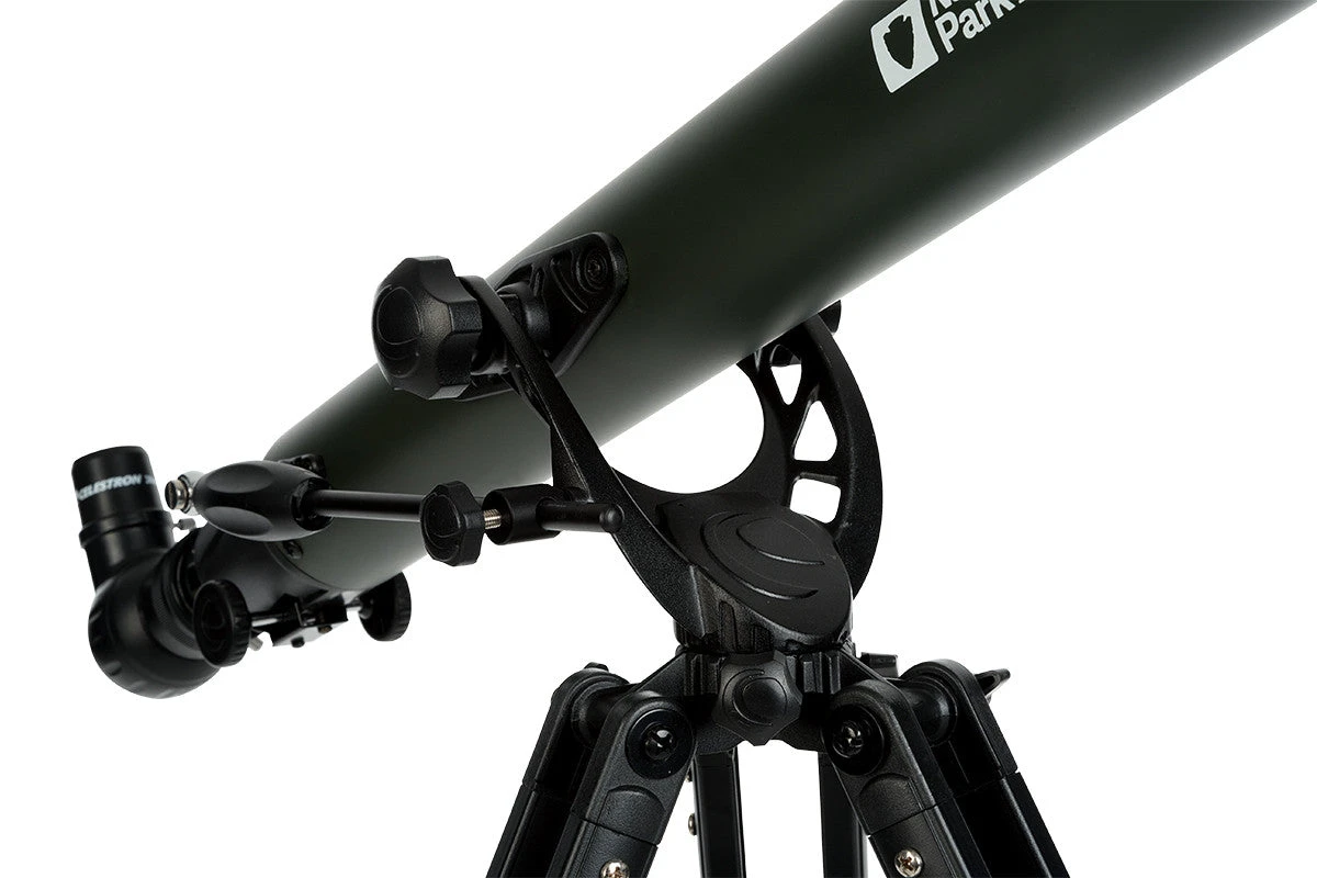 The Celestron National Park Foundationâs (NPF) Explorascope 60AZ is a manual alt-azimuth, refractor telescope perfect for celestial viewing on the go. The NPF Explorascope 60 can view the planets, moon, star clusters and brighter deep sky objects like the Orion Nebula and Andromeda Galaxy.