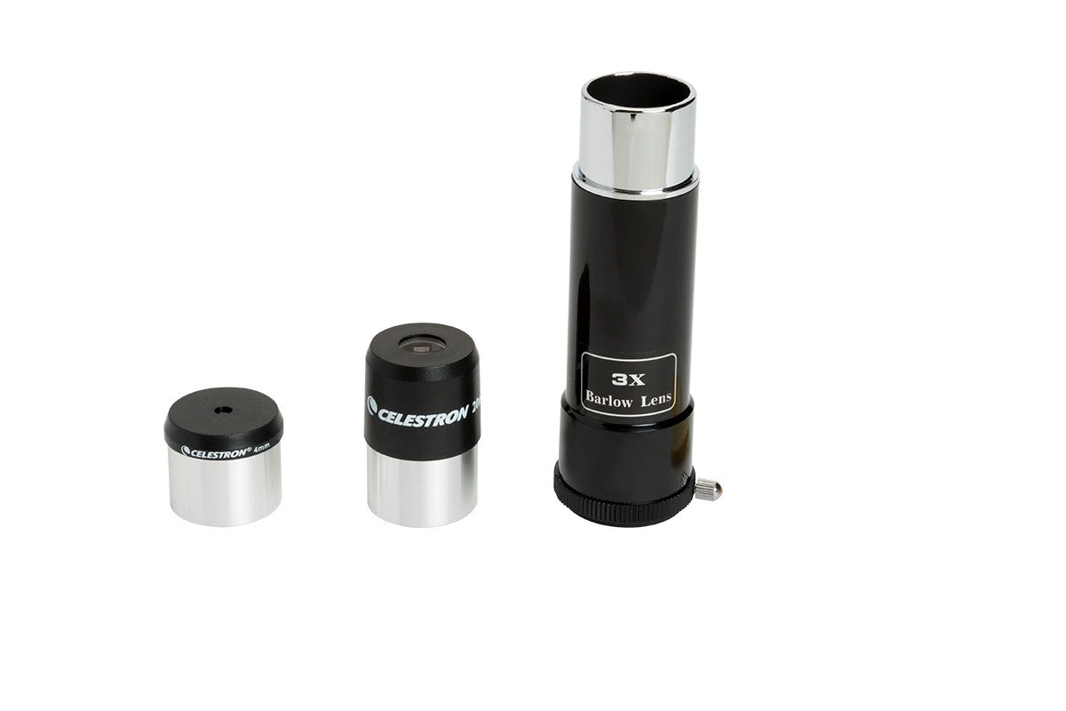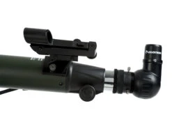 The NPF Explorascope 60AZ comes with two eyepieces (20mm and 4mm), 3x Barlow lens, 90° erect image, and a red dot finderscope. Choose the 20mm eyepiece for low power or the 4mm eyepiece for higher magnification views. The red dot finderscope helps you quickly center an object in the eyepiece for easier observing. For even more magnification, connect your 3x Barlow lens to triple the power of each eyepiece. Combined with the Barlow lens, this telescope provides up to 105x magnification (20mm eyepiece) or 525x magnification (4mm eyepiece).