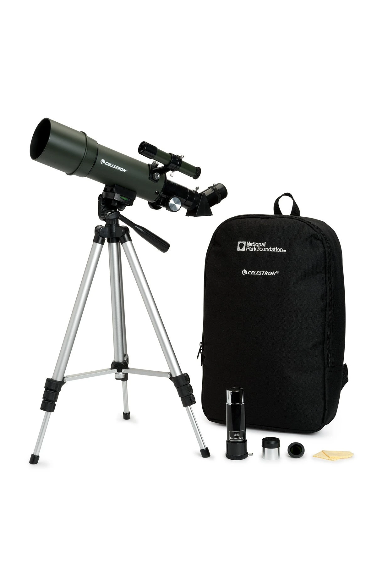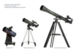 The special edition National Park Foundation Travel Scope 60 is designed with traveling in mind and offers high-quality performance at an exceptional value. The Travel Scope 60 is a refractor telescope perfect for terrestrial and celestial viewing on the go. The Travel Scope can view the planets, moon, star clusters and brighter deep sky objects like the Orion Nebula and Andromeda Galaxy at night and with the erect image star diagonal makes the optical tube ideal for using as a spotting scope during the day.