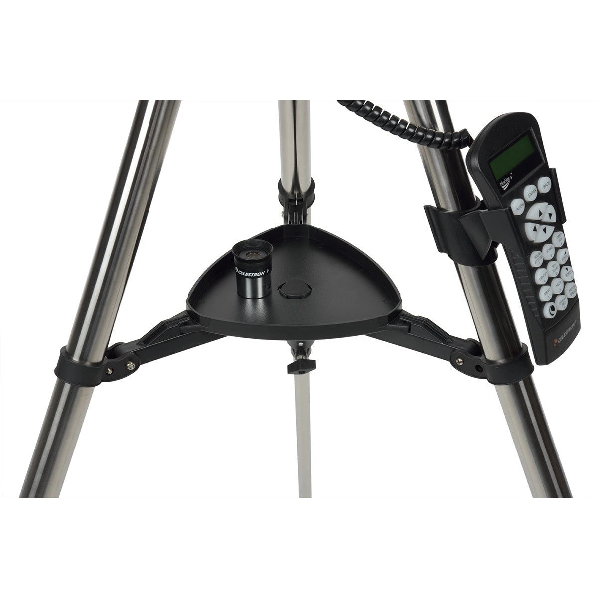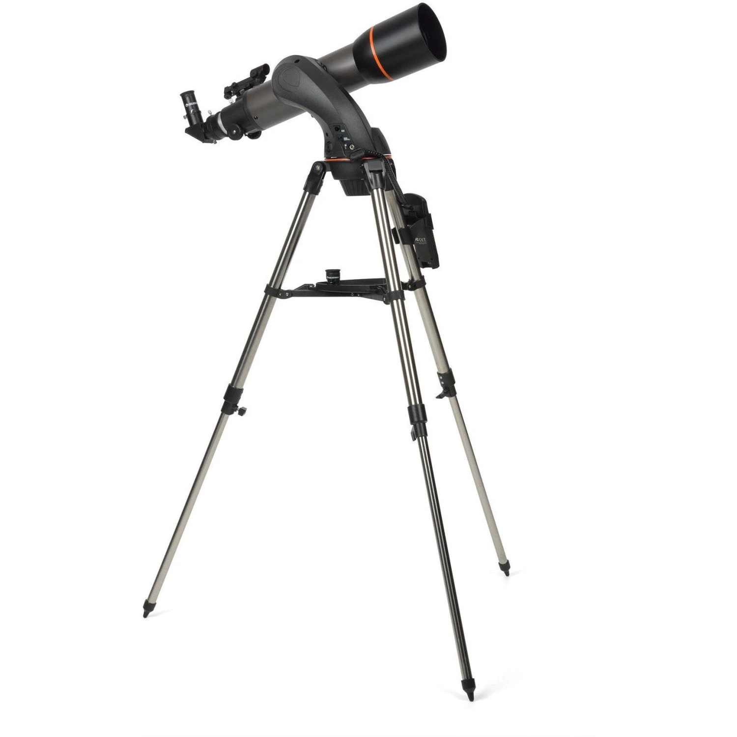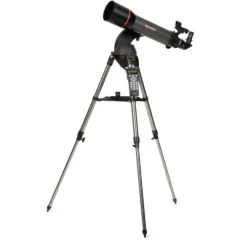 This telescope comes with a pre-assembled, adjustable stainless-steel tripod, quick release fork arm, NexStar+ computerized hand control, 102mm Refractor optical tube, and lots of bonus accessories.