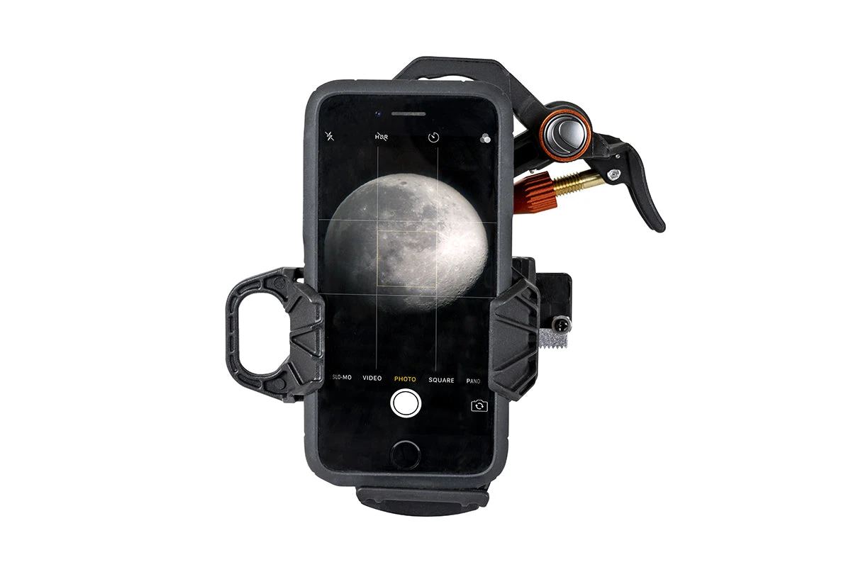 And even though this adjustment is ultra-precise, it’s still quicker and easier than with other adapters. From start to finish, the process only takes about 30 seconds, including the time it takes to insert the phone into NexYZ, attach NexYZ to an eyepiece, start the camera app, and center the camera over the eyepiece using the knobs.