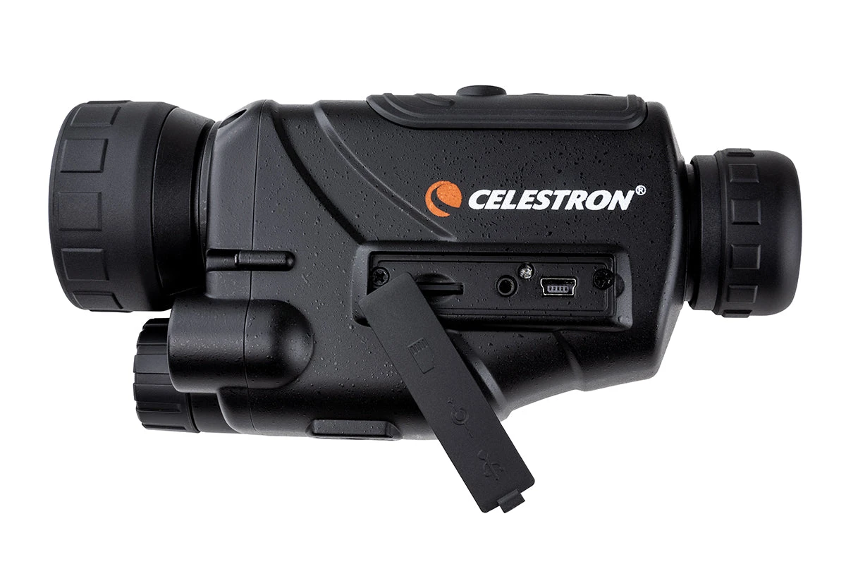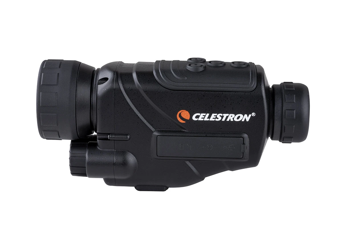 The NV-2 Night Vision Scope features a durable polymer chassis with thick rubber armor coating to protect the objective and eyepiece lenses. The scope is water resistant IPX4, so you can use it confidently in damp conditions or endure water splashes in the field. The rechargeable lithium-ion battery powers the Celestron NV-2 Night Vision Scope for 2-3 hours of continuous use.