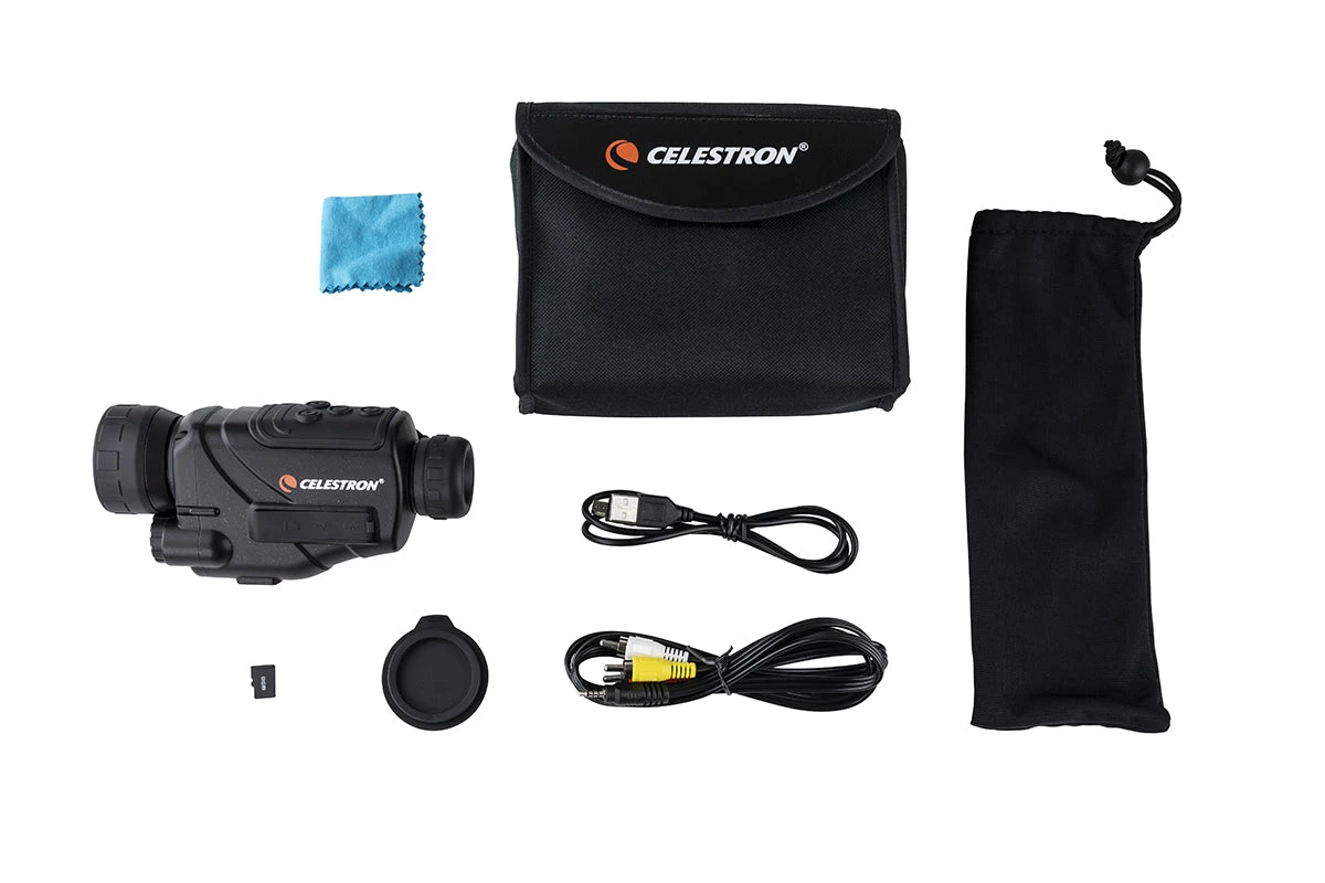 The Celestron NV-2 Night Vision Scope is a one-hand scope that offers both dusk and night-vision viewing, still image and video recording, in-device playback, and more. It’s the ideal tool for wildlife observation, security surveillance, and a variety of other applications. The scope allows for long-distance viewing of subjects up to 200 meters away. Best of all, you can capture and save photos and videos of all your discoveries on the NV-2’s included 8 GB microSD memory card for future reference.