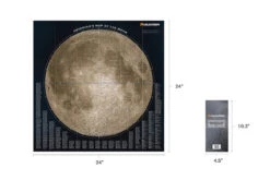 The Observer’s Map of the Moon is waterproof, tear-resistant, and can be folded into an 8” x 4” size, making it easy to take along on your next camping trip, star party, or evening in your backyard. When not in use, the Moon map will be a stylish decorative poster on your wall. It makes a great display for your classroom or astronomy club.
