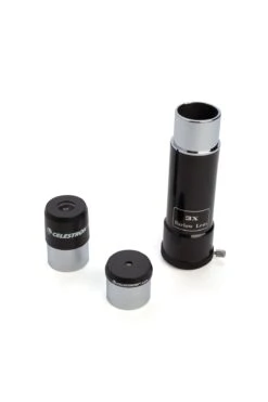 The PowerSeekerĀ 80 comes with two eyepieces (20mm and 4mm), a erect image diagonal, 3x Barlow lens, and a finderscope.Ā The two eyepieces offer different magnifications to view your intended object. For even more magnification, connect your 3x Barlow lens to triple the power of each eyepiece. The erect image diagonal allows for right-side-up viewing ideal for terrestrial subjects but can also be used for celestial objects. The finderscope will help you quickly center an object in your eyepiece for easier observing.Ā