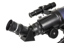 In addition to the 70mm refractor telescope, you will receive two eyepieces (20mm and 10mm), an 45° erect image diagonal, and a 5×24 finderscope. The two eyepieces offer different magnifications so you can view your subject at low or high power. The erect image diagonal allows for more comfortable viewing and right-side-up images. Lastly, the finderscope will help you locate objects and quickly center them in your telescope’s eyepiece.