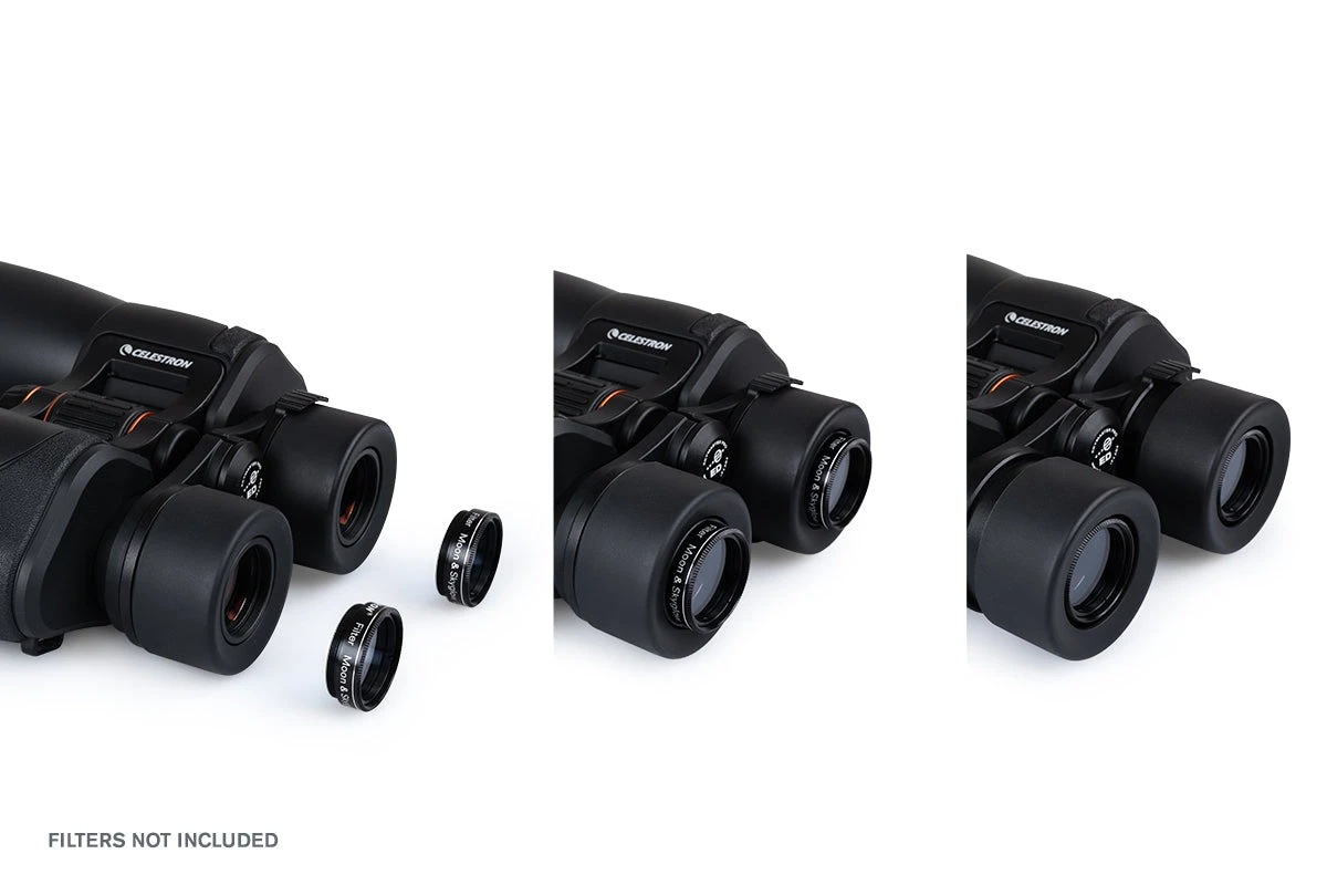 s. Adding the right filter can deliver game-changing views for terrestrial and celestial observing. For terrestrial observation, filters can reduce the brightness of sand, snow, and water. For nighttime viewing, filters can cut glare, minimize eye strain, increase contrast, and even combat the effects of light pollution. Remember, the binocular needs a set of two filters. For a complete list of filters and their benefits, click