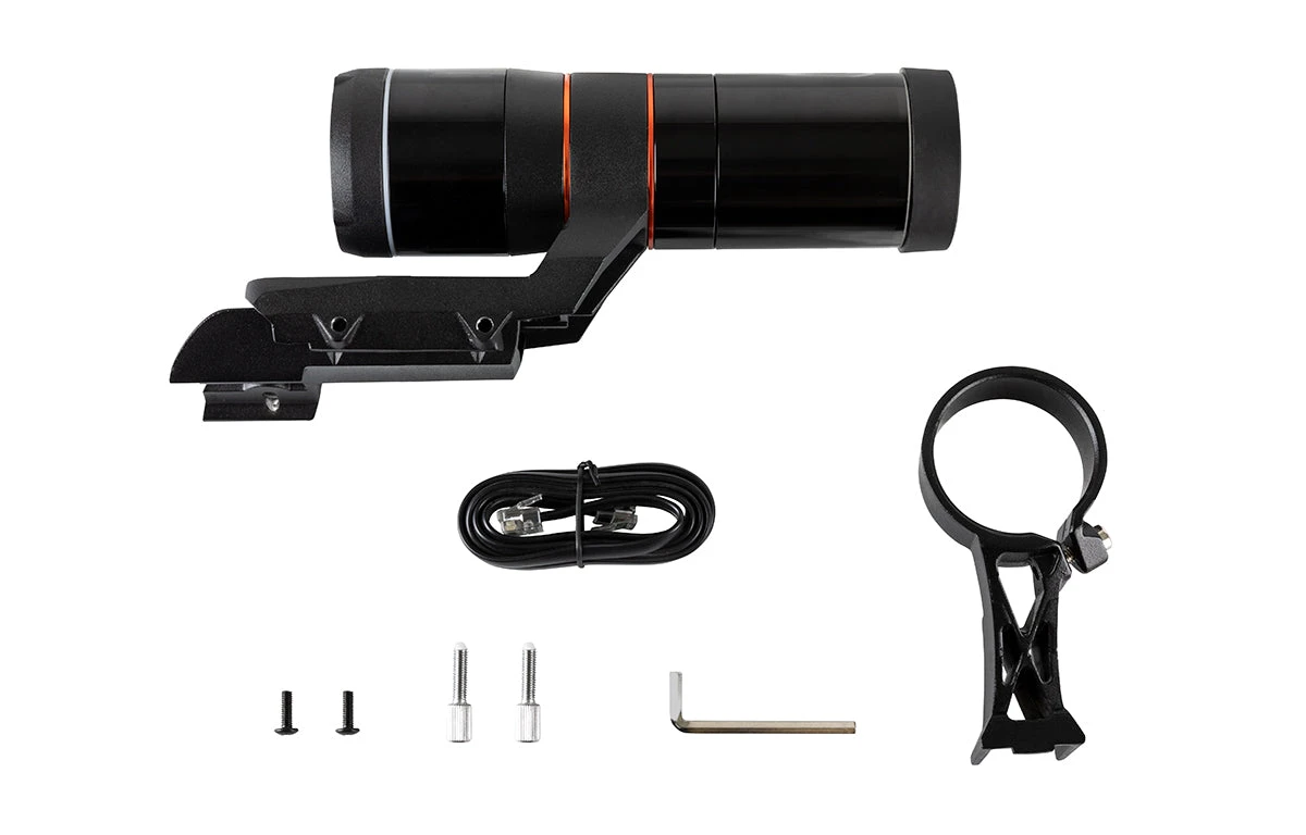 The StarSense Autoguider features a high-quality 4-element optical design devised by the famed optical designer Mark Ackermann. Its unique design delivers sharper images than other mini-guidescopes. The optical tube is threaded to accept 2” astronomical filters. Add an IR-pass filter to align your mount in twilight or a neutral density filter for daytime focusing.