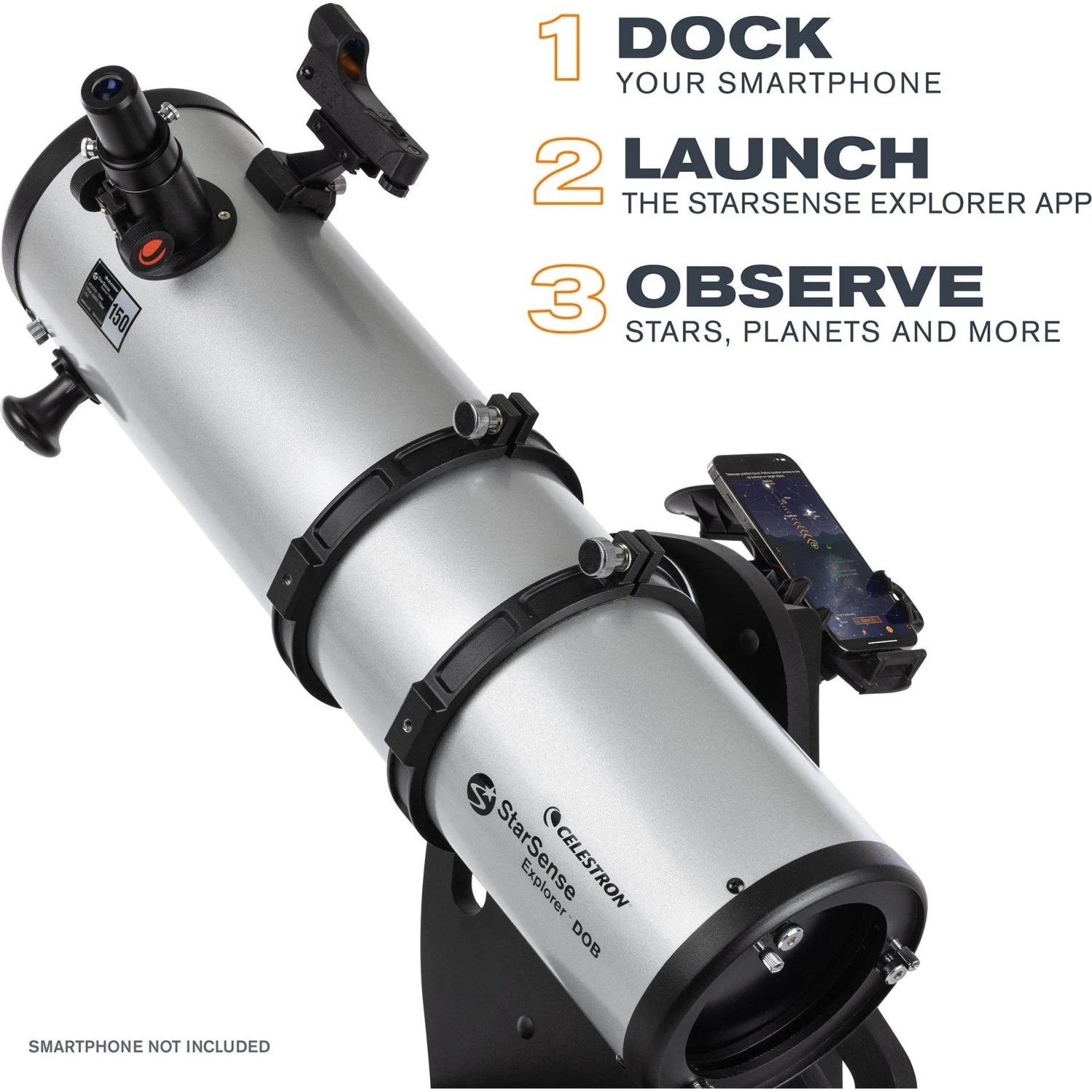 Leave complicated star charts, imprecise planetarium apps, and computerized mounts behind. With StarSense Explorer, locating objects has never been easier, faster, or more accurate. Within minutes of setting up the telescope, you’ll be navigating the sky with confidence. Simply place your phone in the unique StarSense dock and launch the StarSense Explorer app.