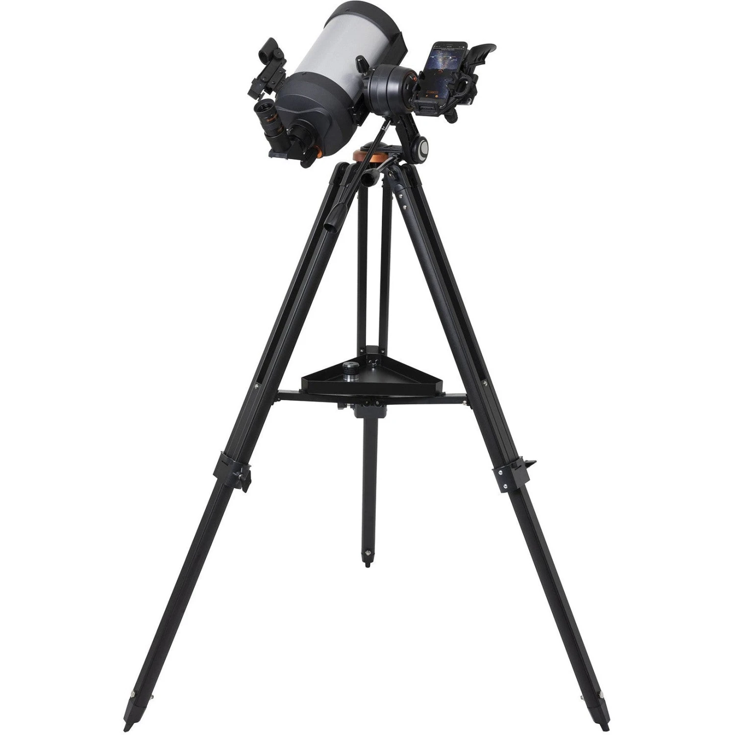 With a large 5” Schmidt-Cassegrain optical tube—Celestron’s tried-and-true optical design for over 50 years—this telescope has enough light gathering ability to bring out impressive detail in celestial objects while remaining compact and lightweight. You can expect sharp, bright views of Jupiter’s four Galilean moons, its cloud bands and Great Red Spot, the rings of Saturn, the trapezium in the Orion Nebula, and the beautiful Pleiades Open Star Cluster.
