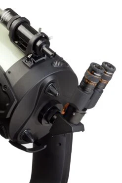 The Celestron Binocular Viewer weighs about 18 oz and uses approximately 3.5″ of back focus. This is sufficient for most catadioptric telescopes (Schmidt-Cassegrain, Maksutov-Cassegrain, etc.) as well as a good number of refractor-style telescopes. Newtonians and some spotting scopes have the least amount of back focus. Using a binoviewer on these designs may result in the inability to focus to infinity. Remember, binocular viewers require the use of two matched 1.25” eyepieces, which are sold separately.
