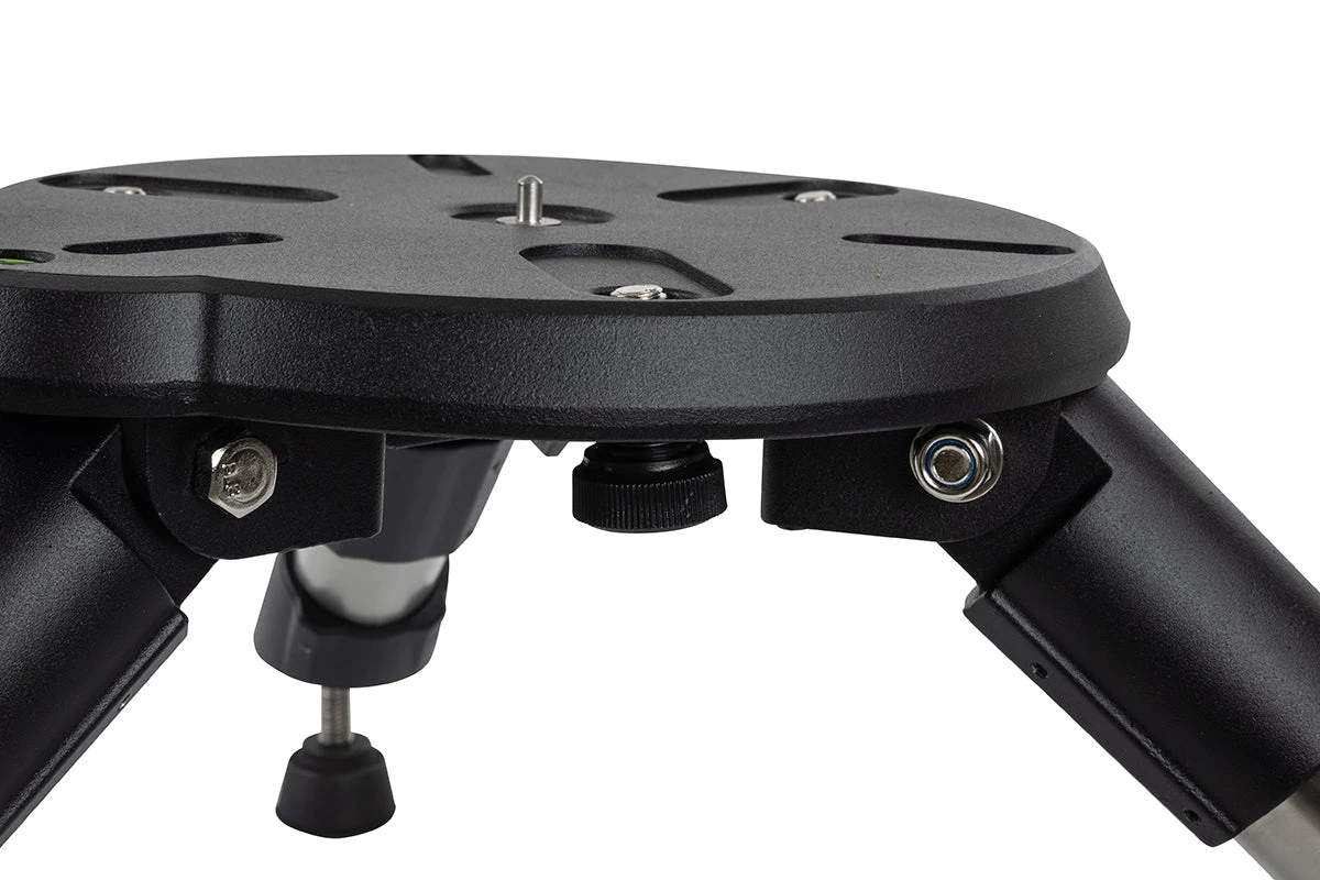 The Tabletop Tripod has adjustable knobs on each leg and a bubble leveler on the mount plate to ensure your setup is level before adding the telescope. Just like the NexStar SE and NexStar Evolutionās standard tripod, the Tabletop Tripod has three captured screws on the underside of the mount plate so you can securely lock your mount and telescope in place.