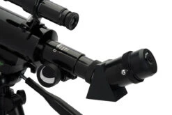 The Travel Scope 50 comes with two eyepieces (20mm and 8mm), 45° erect image diagonal, 3x Barlow lens, 2×20 finderscope, and a travel backpack. The two eyepieces offer different magnifications to view your intended object. The erect image diagonal allows for right-side-up viewing ideal for terrestrial subjects but can also be used for celestial objects. The 2×20 finderscope will help you quickly center an object in your eyepiece for easier observing. Connect your 3x Barlow lens to your eyepieces to magnify your view. The 3x Barlow lens provides a 60x and 135x magnification for your scope.