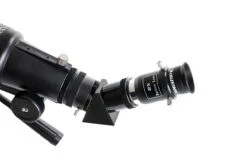 In addition to the smartphone adapter and Bluetooth shutter release, Travel Scope 70 DX includes a full selection of optical accessories, including two eyepieces (20mm and 10mm), an erect image diagonal, a finderscope, a 2x Barlow lens, and a 1.25” Moon filter. The two eyepieces offer different magnifications so you can view your subject at low or high power. The erect image diagonal allows for more comfortable viewing and right-side-up images. The permanently mounted finderscope will help you locate objects and quickly center them in your telescope’s eyepiece. Lastly, the Moon filter reduces glare and increases contrast on the surface of the Moon.