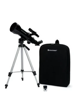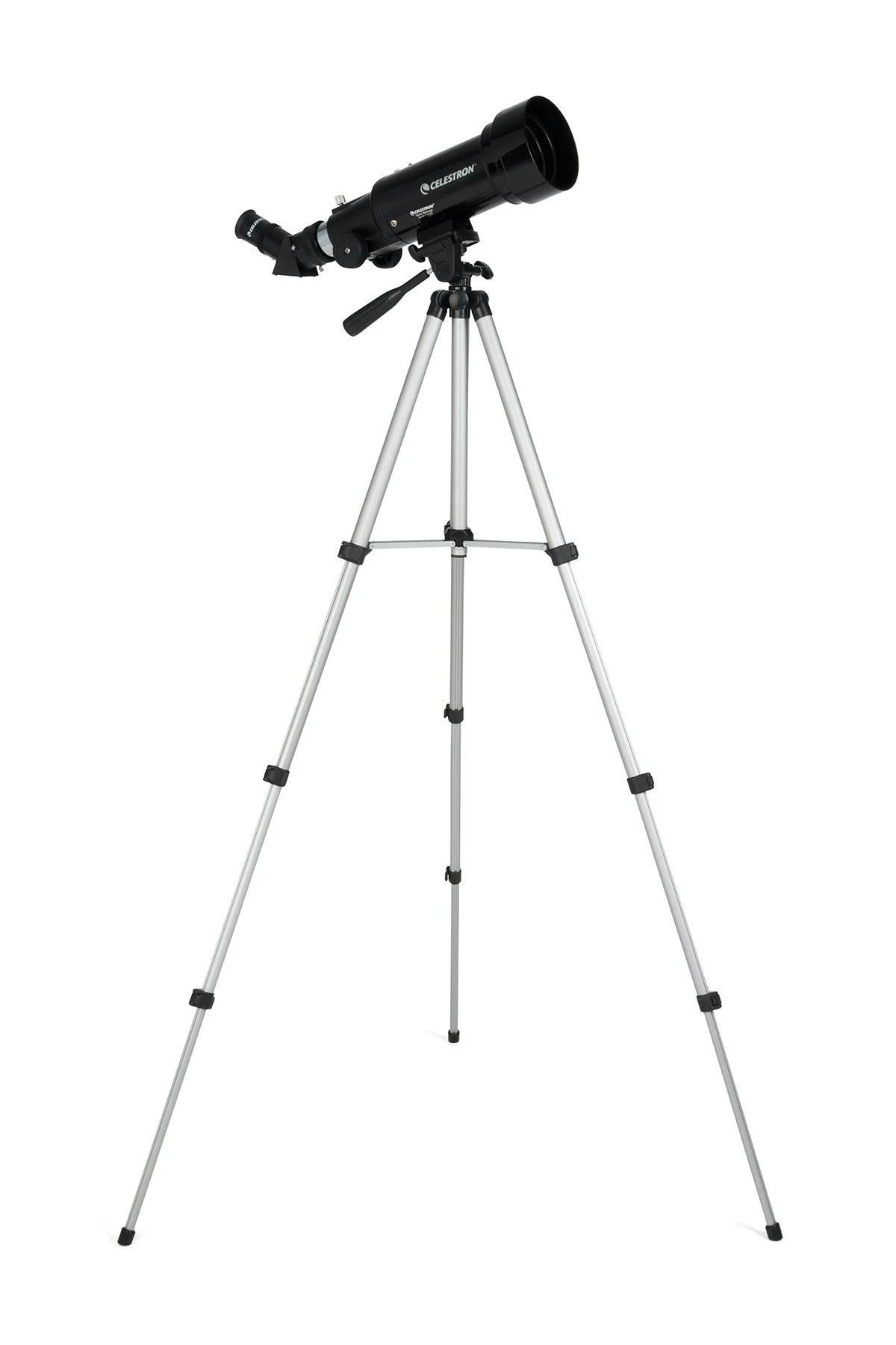 The Travel Scope 70 is a refractor telescope perfect for terrestrial and celestial viewing on the go. The Travel Scope can view the planets, moon, star clusters and brighter deep sky objects like the Orion Nebula and Andromeda Galaxy at night and with the erect image star diagonal makes the optical tube ideal for using as a spotting scope during the day.