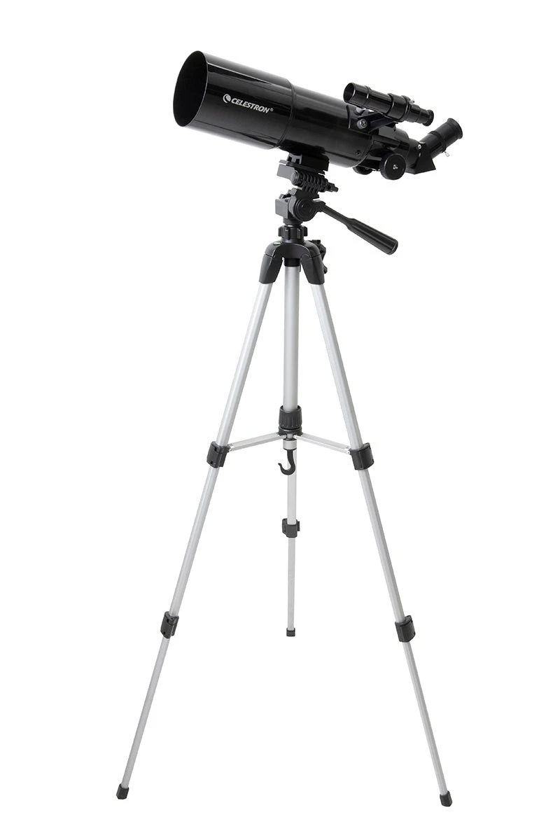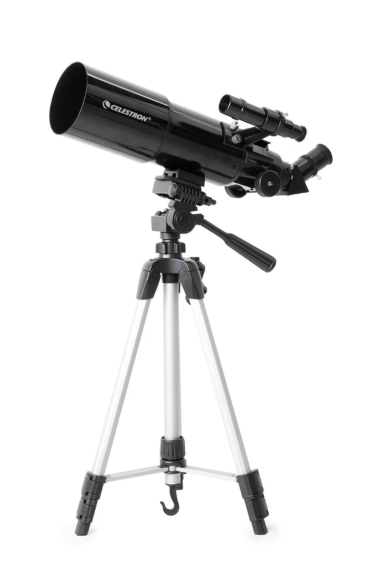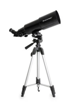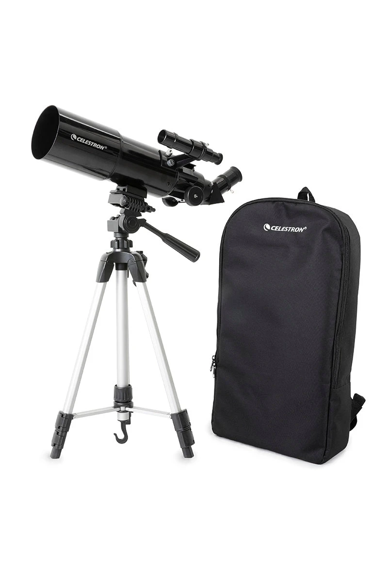 The Travel Scope 80 is a refractor telescope perfect for terrestrial and celestial viewing on the go. The Travel Scope can view the planets, moon, star clusters and brighter deep sky objects like the Orion Nebula and Andromeda Galaxy at night. The erect image star diagonal makes the optical tube ideal for using as a spotting scope during the day.