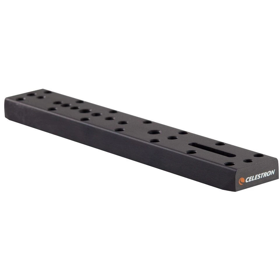 The Celestron CG-5 Universal Mounting Plate is a basic accessory that allows you to attach a wide range of telescope accessories to the mounting platform of an Advanced CG-5 or Advanced VX mount. It will accept standard mounting rings, spotting scopes, and cameras. The mounting plate is drilled with several of the most common hole types and patterns, including 3/8”-16, 5/16”-18, and 1/4”-20.