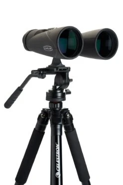 Echelon binoculars are easily attached to a photographic tripod for extended observing sessions. A binocular tripod adapter (sold separately) is used to make the connection between the binoculars and a standard tripod, and is especially helpful for vibration-free observations of the night sky.