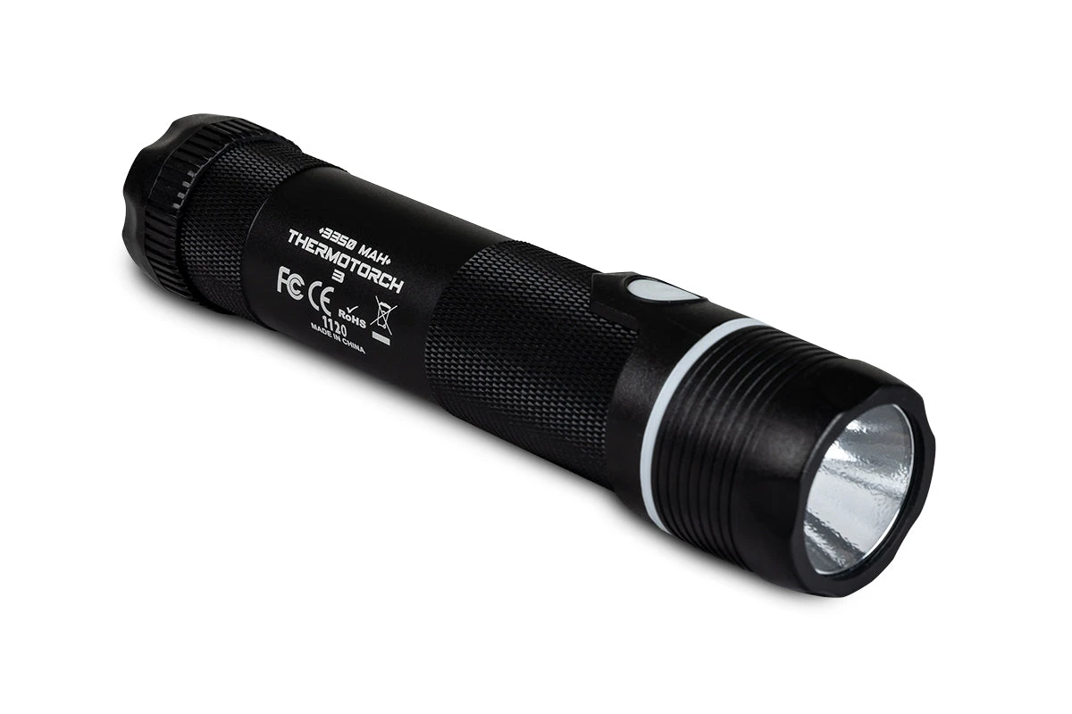 The special edition flashlight provides 3 modes of white-light illumination, for a total of 15 hours of light on a single charge. Unlike traditional flashlights, ThermoTorch 3 features an internal lithium battery, so you can recharge it hundreds of times without spending money on batteries.