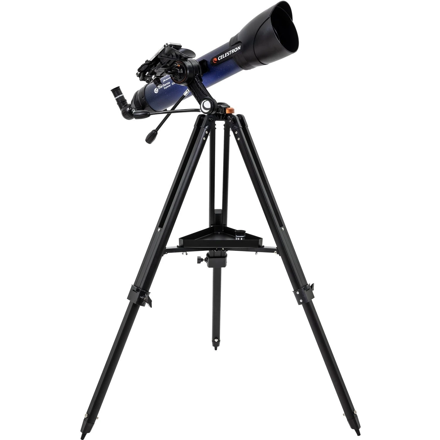 An ultra-stable altazimuth mount provides a sturdy foundation for StarSense Explorer DX. Slip clutches and geared slow-motion controls in both axes help you move the telescope smoothly and zero in on your target. As celestial objects appear to drift across the night sky, you’ll be able to follow them with just a few turns of the knobs. It’s all anchored by an adjustable, full-height tripod.